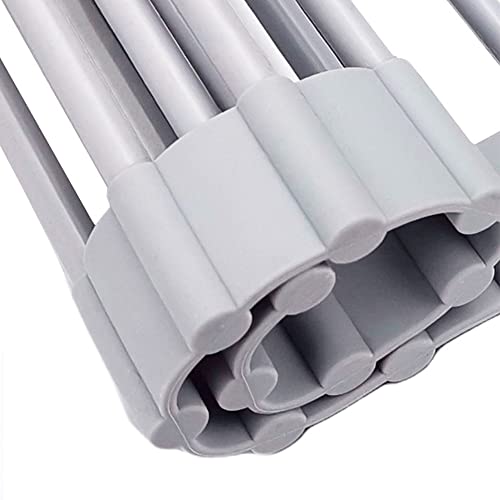 Il nostro porta stoviglie arrotolabile sopra il lavello ha un design flessibile ed è realizzato in silicone + barre di ferro zincato.