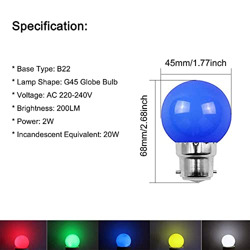 Aiwerttes B22 Lampadina LED 2W Equivalente a 20W Lampadina a Baionetta Colorata Blu G45 Mini Lampadina Globo per Terrazza all'aperto Ghirlanda di Natale, Confezione da 10
