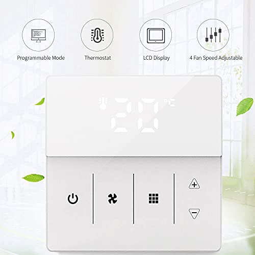 【Display LCD Touch Screen】 Aspetto elegante, display LCD, tasti a sfioramento, facile da leggere. Questo termostato wifi viene utilizzato per l'aria condizionata centralizzata, ventilconvettori