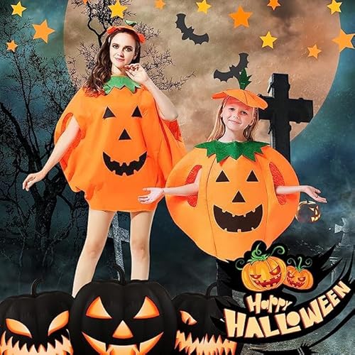 AIXIMA Costume Da Zucca per Dambini,Costume Da Zucca Halloween, Con Cesto Di Zucca E Cappello, Per Costume Di Carnevale Per Ragazzi E Ragazze, Cosplay, Festa Di Halloween (bambino)
