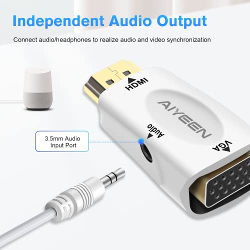 AIYEEN Adattatore da HDMI a VGA, Adattatore da HDMI Maschio a VGA Femmina 1080p con cavo Jack Audio da 3,5 mm Compatibile con Monitor, Laptop, Computer, Proiettore, HDTV, Chromebook e altro (Bianco)