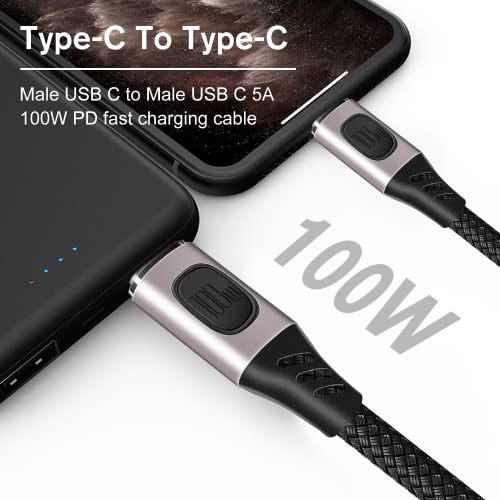 【Ricarica Rapida USB C da 100 W】Il cavo da USB C a USB C supporta fino a 100 W di potenza (20 V/5 A). Ricarica MacBook Pro al 50% in 35 minuti e Samsung S22 all'80% in 35 minuti. (Nota: la velocità di ricarica effettiva dipende dal dispositivo e dal caricatore a muro)