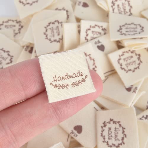 ☑ Handmade with Love: Riceverai 100 etichette in tessuto fatte a mano con la scritta "Handmade with ❤". Queste etichette per etichette in tessuto sono ideali per i tuoi capi fai-da-te, perfette per etichette in tessuto eleganti per abbigliamento, biancheria, artigianato, articoli fatti a mano e altro ancora.