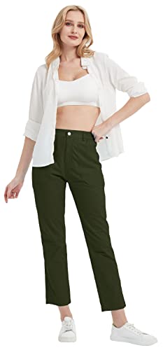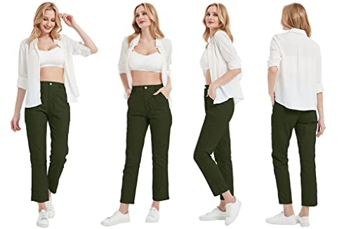 AjezMax Donna Pantalone da Lavoro 100% Cotone Elegante Pantaloni Lunghi Ufficio Verde Militare L