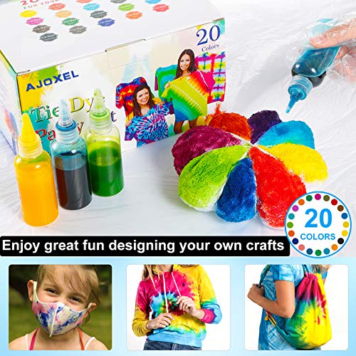 AJOXEL Tie Dye Kit, 20 Colori per Tessuti Permanenti Graffiti polvere colorante, Guanti, Grembiuli, Elastici, Tovaglie DIY Tessuti Stoffe Permanenti Tintura Cravatta Non Tossico per Bambini e Adulti