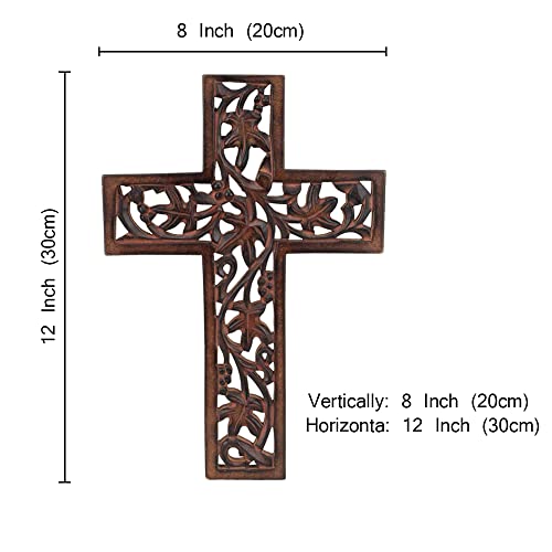 Ajuny - Croce in legno da appendere alla parete, intagliata a mano, con motivo floreale, decorazione per altare religioso, casa, soggiorno