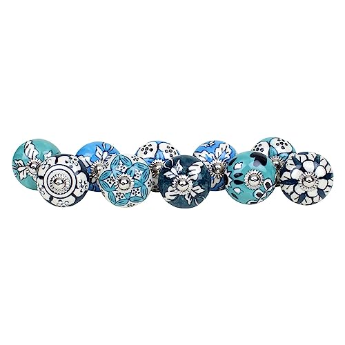 Ajuny Set di 10 pomelli in ceramica blu per armadietti da cucina, bagno, cassettiere, cassettiere, cassettiere fatte a mano