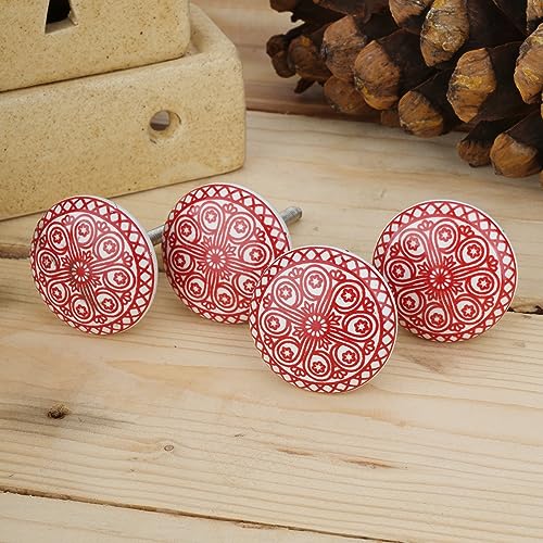 【ELEGANTE E DECORATIVO】: le manopole presentano una finitura lucida e un modello di rivestimento bianco rosso dipinto a mano. Questo intricato design aggiunge un elemento decorativo agli armadi da cucina, agli armadi e ad altri mobili. Le manopole fungono da hardware funzionale e accenti decorativi.
