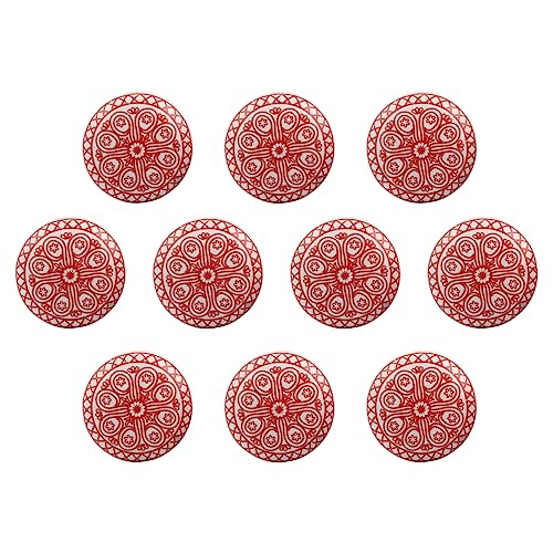 Ajuny, Pomelli in ceramica rossa e bianca per armadietti, cassettiere, cassetti e mobili, dipinti a mano, motivo floreale antico (rotondi, confezione da 10)