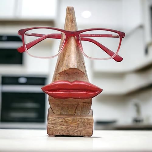 Ajuny - Supporto per occhiali da vista a forma di labbra in legno, fatto a mano