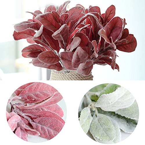 Foglie realistiche di velluto: vere orecchie da coniglio. Il gambo di corno di agnello Lesfu è una pianta verde speciale con un aspetto naturale. Il floccaggio artificiale bianco viene aggiunto al colore originale di sfondo verde e rosso, che è sia bello che carino