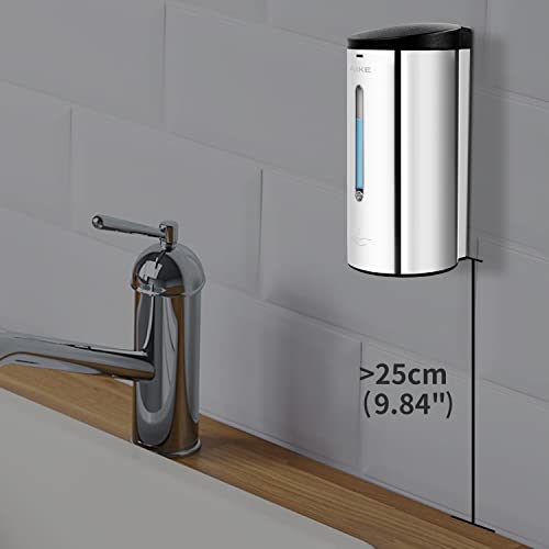 AIKE AK1205 Dispenser di Sapone Liquido Commerciale Automatico a Parete in Acciaio Inossidabile Lucido di Grande capacità 700 ml