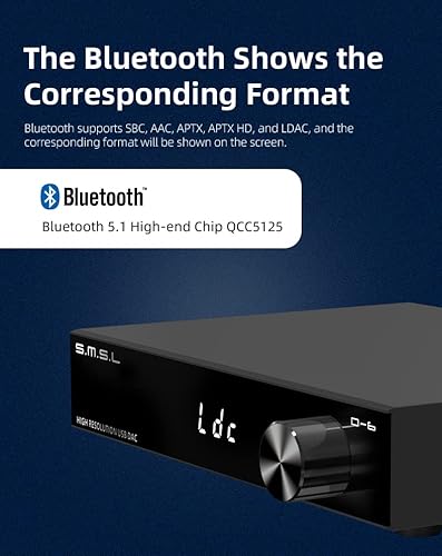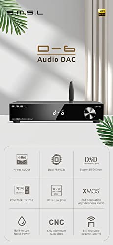 S.M.S.L D-6 Dual AK4493s Chip Bluetooth 5.1 LDAC Audio DAC DSD512 PCM 768kHz 32Bit CK-03 Orologio Moudule 6.35mm TRS* 2 Uscita bilanciata Tipo C a Tipo C USB RCA Decoder con telecomando (nero)