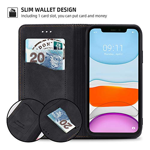 AKABEILA Cover iPhone 11 Pelle, Custodia iPhone 11 Silicone, Compatibile per Apple iPhone 11 Cover Custodia Flip Portafoglio Magnetica Stand Covers Frosted Porta Telefono, Nero