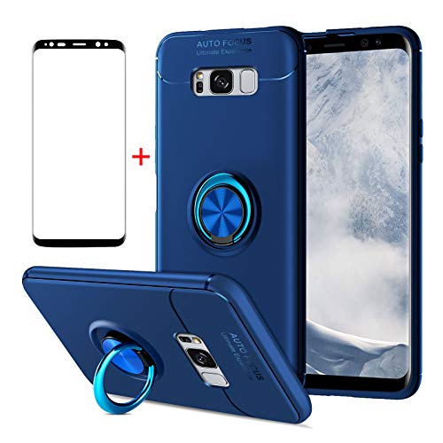 AKABEILA Cover Samsung S8, Vetro Temperato Samsung S8, Compatibile con Samsung Galaxy S8 Custodia Silicone Pellicola [Metallo Squillare Grip Supporto] Antiurto Cover, Blu