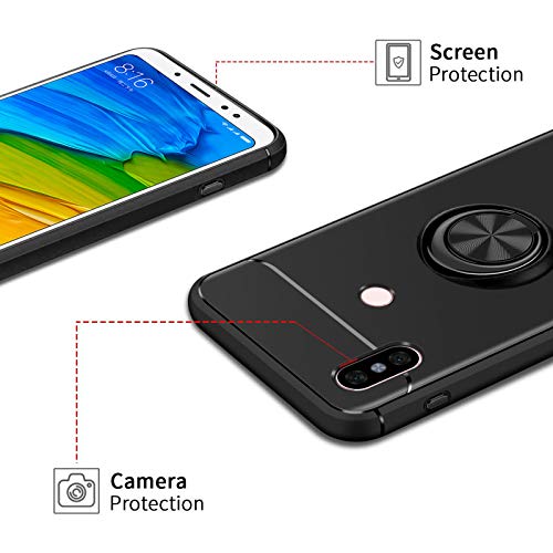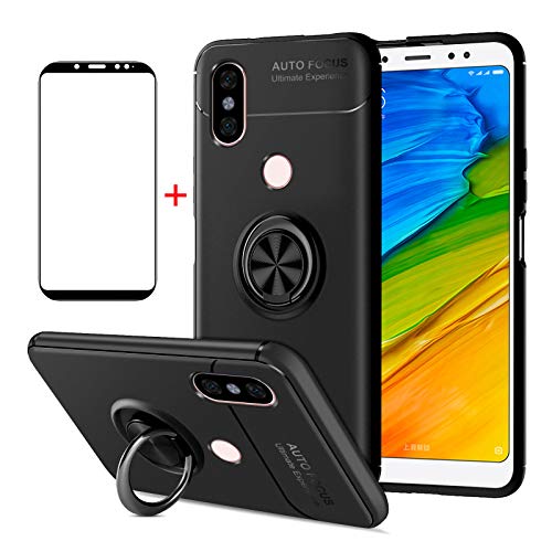 AKABEILA Cover Xiaomi Redmi Note 5, Vetro Temperato Xiaomi Redmi Note 5, Compatibile con Xiaomi Redmi Note 5 Custodia Silicone Pellicola [Metallo Squillare Grip Supporto] Antiurto Cover, Nero