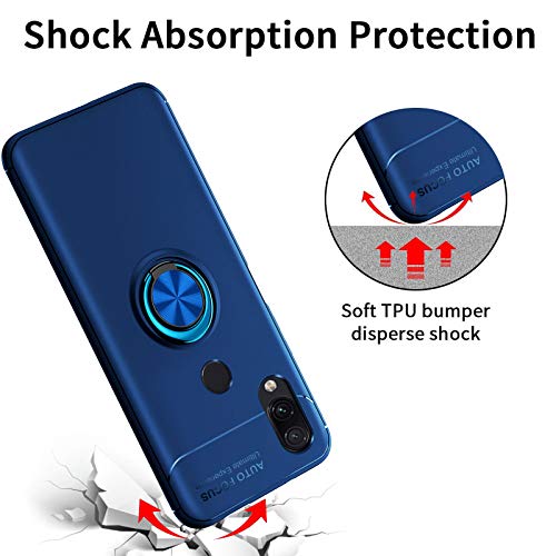AKABEILA Cover Xiaomi Redmi Note 7, Vetro Temperato Xiaomi Redmi Note 7, Compatibile con Xiaomi Redmi Note 7 Custodia Silicone Pellicola [Metallo Squillare Grip Supporto] Antiurto Cover, Blu