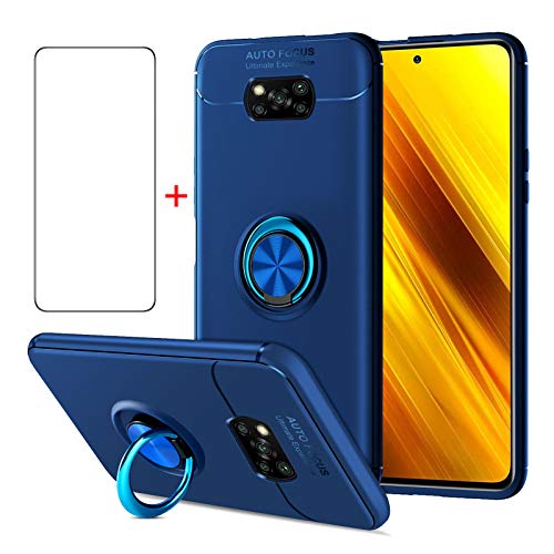 AKABEILA Cover Xiaomi Poco X3 NFC / X3 PRO, Vetro Temperato Xiaomi Poco X3 NFC, Compatibile con Xiaomi Poco X3 NFC Custodia Silicone Pellicola [Metallo Squillare Grip Supporto] Antiurto Cover, Blu