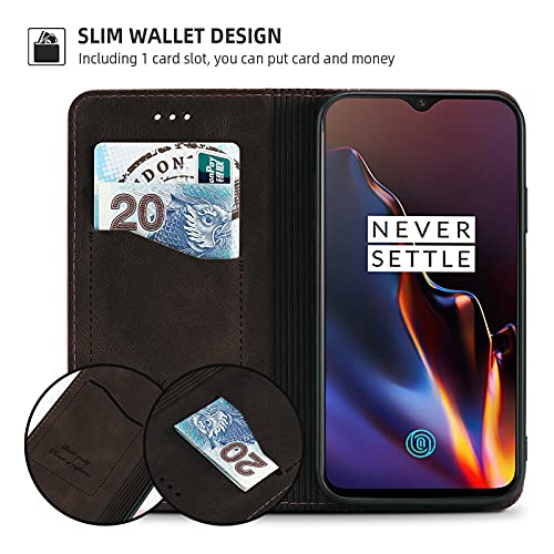 AKABEILA Oneplus 6T, custodia in pelle, Oneplus 6T, in silicone, compatibile con Oneplus 6T, custodia a portafoglio in PU, chiusura magnetica, scomparti per carte di credito, marrone scuro