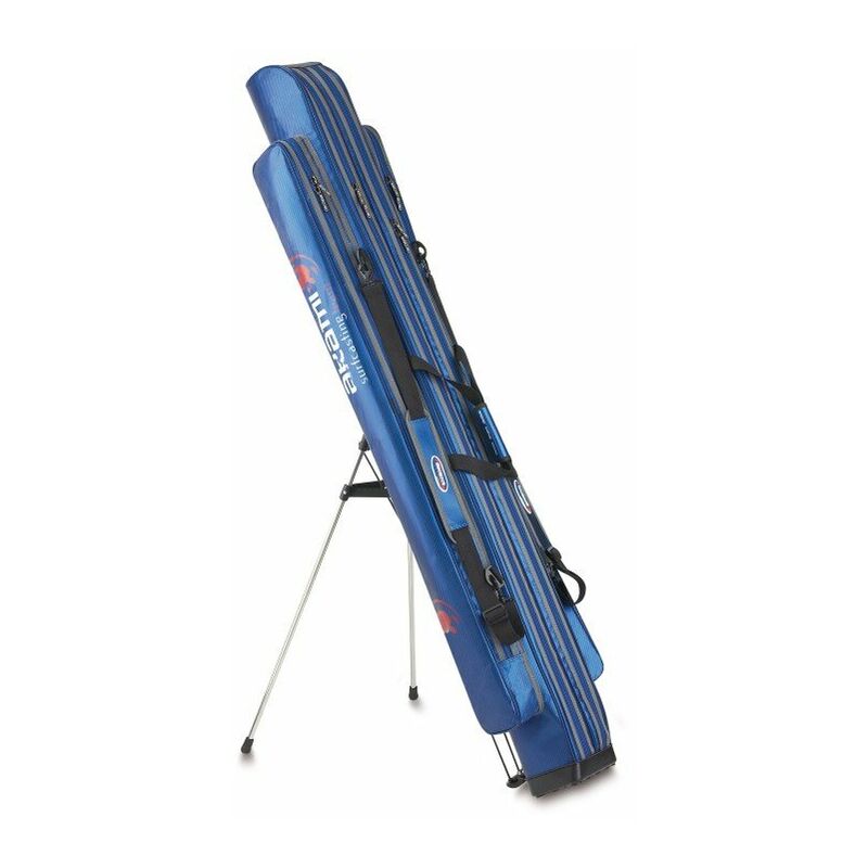 AKAMI FODERO AKRBT04 Fodero portacanne rigido con treppiede rinforzato. Realizzato con anima in platsica posizionata all'interno della fodera in PVC e cerniere extra YKK Giappone. Munitio di tasche esterne con cerniera, tracolle imbottite regolabili. Ideale per il trasporto di 2 canne da surfcasting.