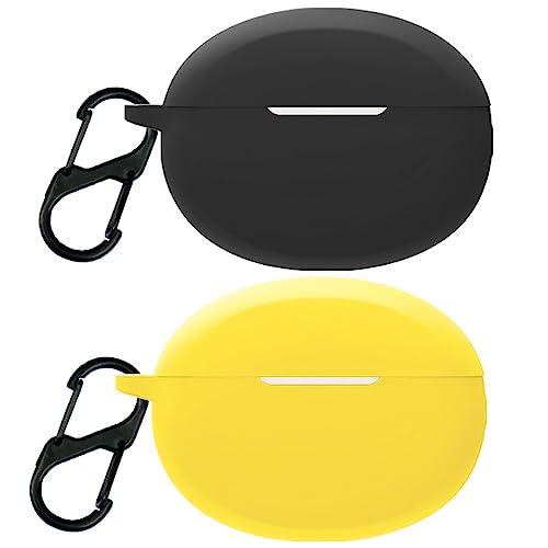 Akancy compatibile per OPPO Enco X2 Custodia per cuffie,[2 Pack] [Supporta la ricarica wireless] [Custodia protettiva antiurto] Custodia protettiva in silicone protettiva per cuffie (black yello)