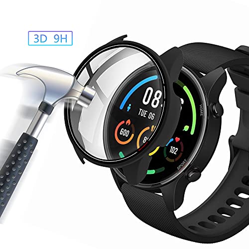 [Design perfetto]: custodia per PC molto resistente + vetro temperato con protezione per lo schermo, copre l'intera parte anteriore e i bordi curvi dell'mi watch, protegge da graffi, cadute e urti.