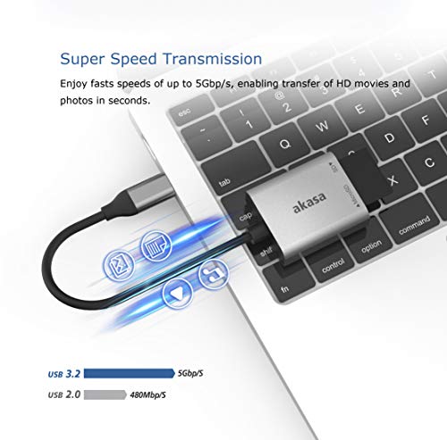 AKASA Compatible USB 3.2 Gen1 Type-C Dual Card Reader - Silber