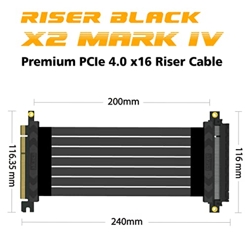 Akasa Riser Black X2 Mark IV | Cavo Riser PCIe 4.0 x16 | Cavo di prolunga PCIe | Cavo Riser GPU | Schermatura EMI | 200 mm | per PC da Gioco e Computer Modding | AK-CBPE03-20B
