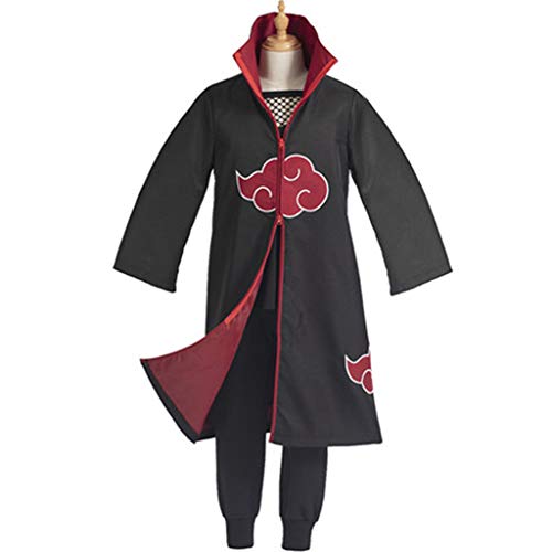 Akatsuki - Cappotto per bambini, unisex, per cosplay, Halloween, feste, con fascia e anello (rosso, nero, XL)
