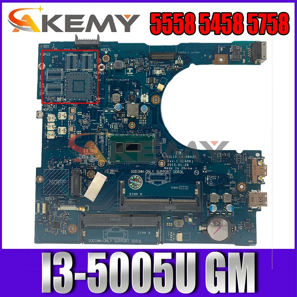 Akemy I3-5005U FOR Dell 5558 5458 5758 Motherboard AAL10 LA-B843P CN-0F0FC6 F0FC6 Mainboard 100% tested