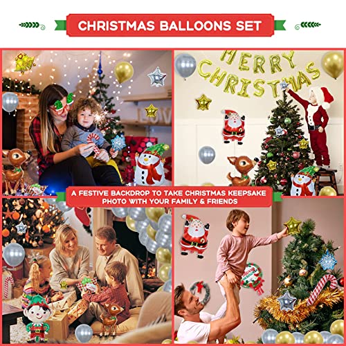 Akface 34 Pezzi Palloncini di Natale Lattice Palloncini, Babbo Natale, Renna, Stampella, Stella Con Buon Natale Banner Decorazione Natalizia per Casa, Feste