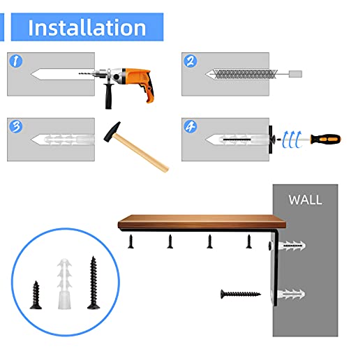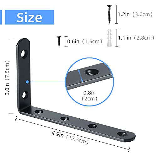 Ampia applicazione: la staffa ad angolo retto a forma di L, in metallo, può essere fissata saldamente alla parete quando si utilizzano correttamente le viti incluse. Sono molto adatti per librerie, espositori, mobili, bagni, cucine, ecc.