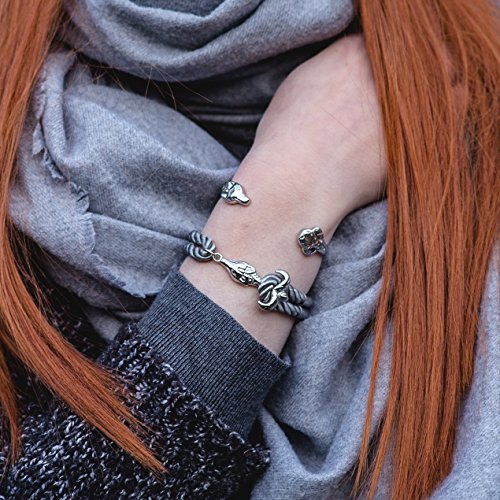Akitsune Bracciale Vulpes | Bracciali Donna Uomo Fibbia in Acciaio Inossidabile Cinturino in Nylon Ancora Volpe - Oro - Grigio 20,5 cm