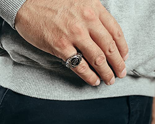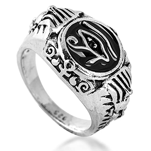 Akitsune Horus Anello | Anello da uomo in acciaio inox Egitto Egitto occhio di Horus Ankh, acciaio INOX