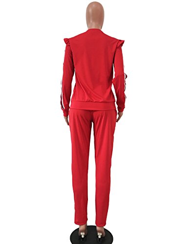 Akmipoem - Tuta da donna in 2 pezzi, felpa con maniche a volant e pantaloni - rosso - XXX-Large