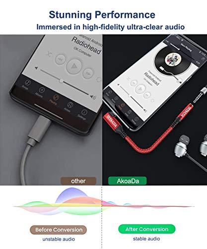 Semplice espansione per il collegamento jack: AkoaDa USB C a 3,5 mm adattatore può collegare il vostro smartphone USB C senza presa audio a cuffie, cuffie, altoparlanti e altri dispositivi audio. Inoltre, l'adattatore audio USB C mantiene il 100% della qualità audio originale senza compressione del segnale, per offrire un'esperienza piacevole durante l'ascolto della musica.