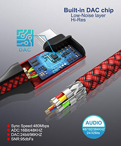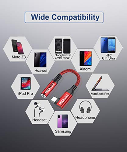 AkoaDa Adattatore da USB C a 3,5 mm per cuffie da 3,5 mm Aux a convertitore audio in nylon intrecciato compatibile con Note S10 S9 Plus iPad Pro 2020 2018 Huawei e altri dispositivi (rosso)