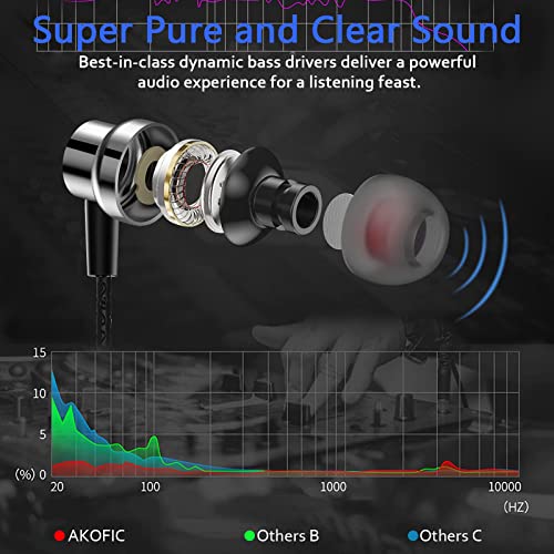 AKOFIC Auricolari, Cuffie In Ear con Microfono Auricolari con Filo Stereo, Cuffie Auricolari Bassi Potenti Compatibile con Dispositivi da 3,5 mm per iPhone iPad Galaxy Sony Huawei Android Lettori MP3