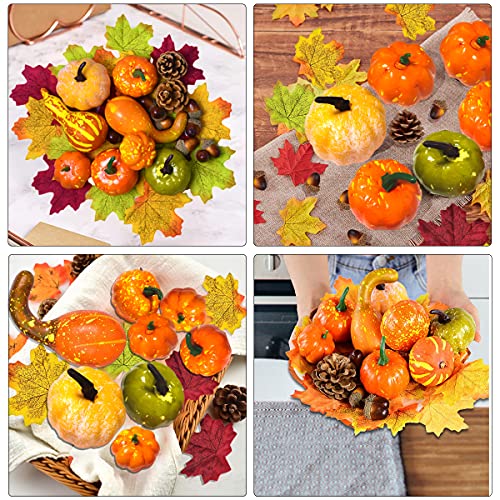 AKOFIC 128 Pezzi Set di Decorazioni Autunnali del Ringraziamento, Mini Zucca Autunnale Artificiale Foglie d'Acero Ghiande Pigne per Halloween Decorazione della Tavola di Autunno Natale