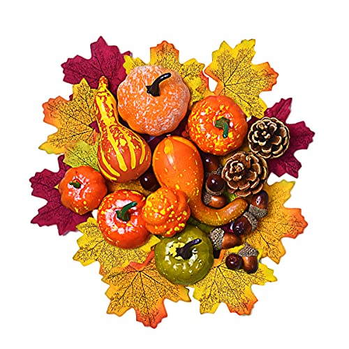 【REGALO D'AUTUNNO PERFETTO】- Zucche artificiali, foglie d'acero, pigne, zucche e ghiande devono essere i regali perfetti per gli amici in autunno. È anche un regalo ideale per i vicini che amano decorare Halloween, Natale, Ringraziamento, compleanno, festa o qualsiasi occasione degna di essere celebrata. In caso di problemi con il nostro prodotto, ti preghiamo di contattarci in tempo.