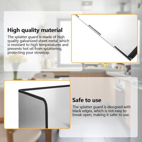 Materiale PVC: il paraspruzzi da cucina pieghevole è realizzato in lamiera zincata, sicura e resistente alle alte temperature, alla corrosione e alla ruggine. I bordi neri del paraspruzzi per fornelli pieghevoli impediscono di graffiare le mani e ne rendono l'uso più sicuro. Il paraschizzi per fornello in acciaio inox può isolare il calore e prevenire efficacemente che la parete del fornello sia coperta di grasso.