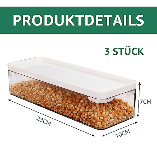 AKOLAFE 3 Pezzi Contenitori Alimentari con Coperchi Ermetici Contenitori Ermetici Plastica Impilabili Senza BPA Pasta Contenitore Pasta Contenitori Per Pasta Rettangolari per Alimenti, Muesli, Cereali
