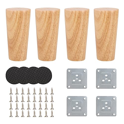 AKOLAFE 4 Pezzi Piedini per Mobili Legno 10 cm Gambe per Mobili Legno con Piastra di Montaggio e Viti rotonde Piedini in Legno Robusti per Mobili, Divano, Letto, Armadio, Divano, Sedia, Tavolo