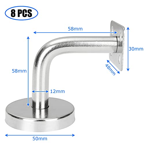 AKOLAFE 8 staffe per corrimano per scale, staffe per ringhiere resistenti, corrimano da parete, in acciaio inox, colore argento, per corrimano a ferro di cavallo o scale quadrate