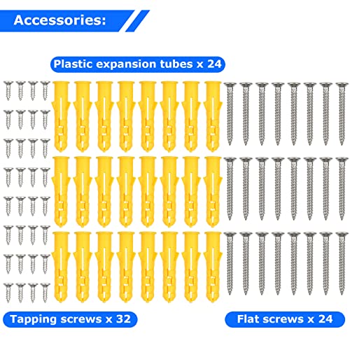 inoltre, riceverai 32 viti autofilettanti, 24 viti piatte e 24 tubi di espansione in plastica