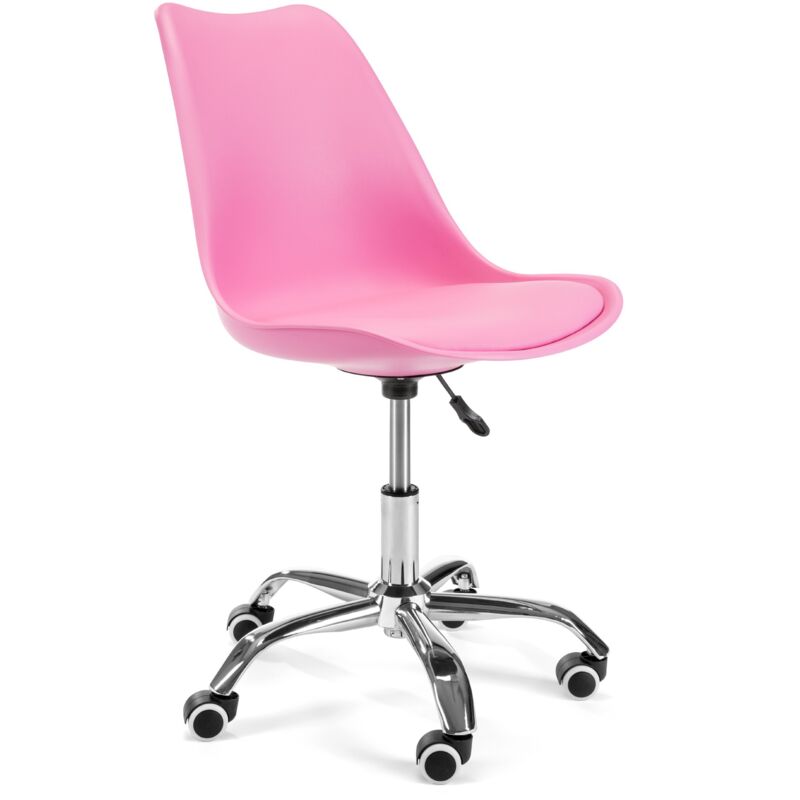 Sedia per bambini AKORD FD005 in Rosa La sedia per bambini AKORD FD005 in Rosa offre un ambiente confortevole per lo studio o il lavoro grazie al suo design ergonomico. Regolabile in altezza da 45 a 55 centimetri, si adatta a bambini e ragazzi di varie altezze. Realizzata in resistente polipropilene, è facile da pulire e offre una lunga durata nel tempo. Lo schienale sagomato assicura comfort durante lunghe sessioni alla scrivania. La base in acciaio garantisce stabilità e sicurezza, mentre le ruote in silicone e gomma permettono uno spostamento silenzioso e senza graffi. Con un elegante colore rosa e dimensioni adatte a diverse scrivanie, si integra perfettamente in qualsiasi ambiente, dalla camera dei bambini allo spazio per l'ufficio. • ALTA QUALITÀ - La sedia per bambini da scrivania Akord è una sedia girevole moderna realizzata con grande attenzione ai dettagli per offrire un comfort eccezionale agli utenti. • ALTEZZA REGOLABILE - Grazie alla regolazione dell'altezza del sedile