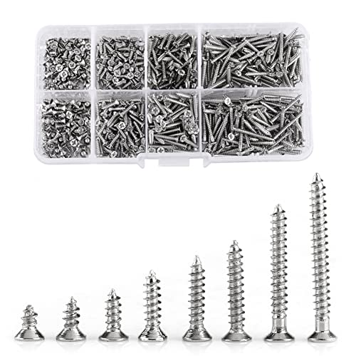 Akozon 800pcs Viti autofilettanti Set M2 viti autofilettanti a testa piatta con trasmissione a croce Viti per lavorazione del legno con scatola