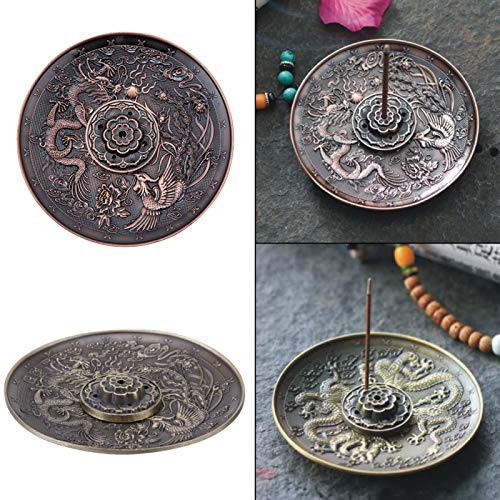 Materiali di alta qualità: bruciatore di incenso inserito con accelerazione, il supporto per bastoncini di incenso è realizzato in materiale in lega di zinco, resistenza alla corrosione, robusto e durevole. L'aspetto della zincatura color bronzo e dei motivi del drago imitano lo stile antico, ti danno alcune sensazioni dei tempi antichi, attraenti.
