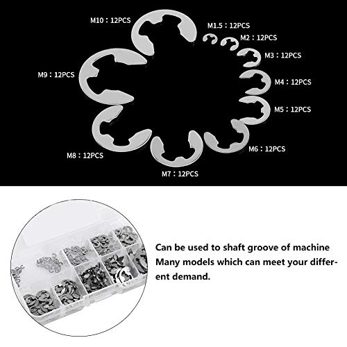 Akozon E-ring Rondelle Piatte 120 pz 1,5mm-10mm E Clip Fermo Anelli Fastener Set Rondelle Piane in Acciaio Inox 304 per Viti Bulloni di Fissaggio Anello di Ritenzione