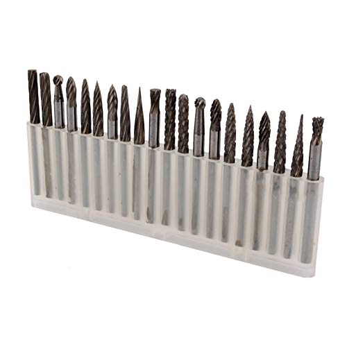 【Il pacchetto include】 20 pezzi di set di smalto rotante in metallo duro solido, impugnatura da 1/8 di pollice (3 mm), adatto a dremel e alla maggior parte dei piccoli utensili rotanti.